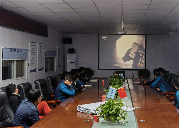 防水公司、华力劳务公司职工晚间自发收看专题节目。