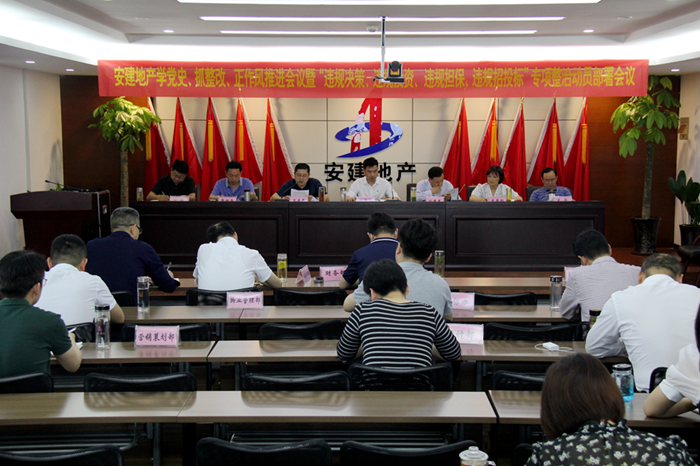 5月27日,安建地产在安建国际大厦21楼集会室召开学党史、抓整改、正作风推进集会暨“违规决策、违规投资、违规担保、违规招 投标”专项整治发动安排集会。安建地产领导班子成员,机关部分正副职,机关全体党员在主会场参会,所属各单位领导班子成员及各部分卖力人在视频分会场参会。