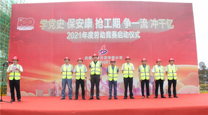 6月16日上午,安徽水利2021年“学党史、保安康、抢工期、争一流、冲千亿”劳动竞赛启动仪式,在安徽水利城建公司上海(蚌埠)微电子科技园项目施工现场举行。安徽水利党委书记、董事长张晓林出席启动仪式,并宣布劳动竞赛正式启动。
