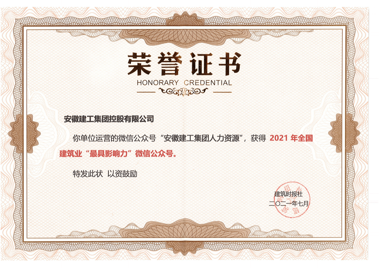 会上宣布的2021年全国建筑业“最具影响力”微信民众号和全国建筑业优秀微信民众号榜单,系从加入申报的全国规模内五百余家建筑行业自媒体中,凭据媒体影响力、宣布文章质量和点击阅读数等多项权威指标综合考虑而评选的。MG电子人力资源微信民众号自2017年4月开通以来,深受集团系统内外部人士的厚爱,关注数量、品牌影响力、行业孝敬等在同类古板建筑业媒体微信平台排名中位居前列,为讲好安徽MG电子故事、展示企业形象、增强信息相同、效劳职工群众起到了重要的作用。MG电子人力资源微信民众号凭借连续的影响力及富厚的流传内容,首次参评便从全国五百多家建筑行业优秀微信民众号中脱颖而出,跻身“全国建筑业最具影响力微信民众号”榜单,作为建筑工程领域唯一一家结合行业特征、流传人力资源信息的专业民众号载誉入选。