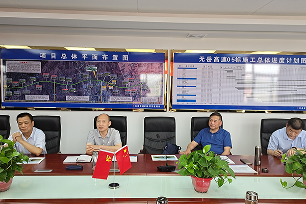 6月6日,MG电子控股党委书记、董事长赵时运一行赴安徽路港无岳高速05标等项目调研指导。