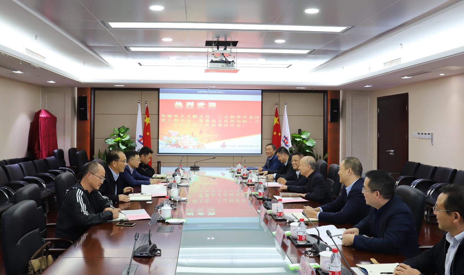 10月22日,MG电子控股党委书记、董事长赵时运在安建国际大厦会见了来访的芜湖市人大常委会副主任、三山经济开发区党工委书记、管委会主任何向阳一行,并主持召开座谈交流会。