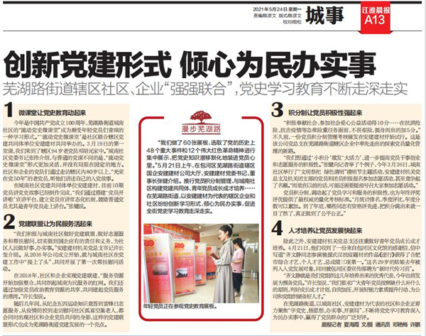 ×Ôµ³Ê·Ñ§Ï°½ÌÓý¿ªÕ¹ÒÔÀ´£¬°²½¨½¨²Äµ³Î¯¼°ËùÊô¸÷Ö§²¿Í¨¹ý·½·¨ÒªÁìÁ¢Ò죬Íƶ¯µ³Ê·Ñ§Ï°½ÌÓýÉîÈëȺÖÚ¡¢ÉîÈëϲ㡢ÉîÈëÈËÐÄ¡£ÅÄÉã¡°²»Íü³õÐÄ¡±MV£»ÀûÓõ³Ô±Ñ§Ï°Æ½Ì¨×éÖ¯µ³Ê·×¨ÌâÏßÉÏ´ðÌâ»î£»Í¨¹ýQQÊÂÇéȺÐû²¼¡°µ³Ê·Ñ§Ï°¡¤Ã¿ÈÕÒ»Ì⡱;ÖÆ×÷µ³Ê·ÖØ´óÀúʷʼþÕ¹°å£¬ÏßÉÏÏßϹ¹½¨ÆðÈ«·½Î»¡¢¶à½Ç¶ÈµÄÍøÂçý½éѧϰƽ̨£¬²»µ«ÓªÔìÁËŨºñµÄµ³Ê·Ñ§Ï°Æø·Õ£¬Ê¹µ³Ê·Ñ§Ï°×ßÉî×ßʵ£¬ÈëÄÔÈëÐÄ£¬¸üÊܵ½Á˽­»´³¿±¨¡¢Ñ§Ï°Ç¿¹úºÏ·Êѧϰƽ̨µÈÖ÷Á÷ýÌ幨ע±¨µÀ¡£