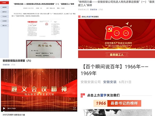 ¹«Ë¾µ³Î¯µÚһʱ¼ä±àӡר¿¯¡¢Ðû´«°å±¨Ï·¢ÖÁËùÊô¸÷µ¥Î»ºÍϲãÏîĿһÏߣ¬Ó̼̮óÒµÍøÕ¾¡¢Î¢ÐÅÃñÖںš¢µç×ÓÆÁ¡¢Ðû´«À¸ºÍËùÊô¸÷µ¥Î»¡¢¸÷ÏîÄ¿²¿ËùÓÐÐû´«Õ󵨣¬ÔÚ¹«Ë¾ÍøÕ¾¡¢Î¢ÐÅÃñÖÚºÅÏȺó¿ªÉè¡°°Ù¸ö˲¼ä˵°ÙÄꡱ¡°µ³Ê·Ñ§Ï°½ÌÓýרÀ¸ÏµÁб¨µÀ¡±¡°Ä£·¶µÄÁ¦Á¿¡ª¡ª°²»Õ×°Öù«Ë¾ÏȽøÈËÎïÏȽøÊ¼£Õ¹²¥¡±¡°¼Í¼·Ü½øÁ¦Á¿¡ª°²»Õ×°Öù«Ë¾Ï²ãÒ»Ïßʼ£Õ¹²¥¡±µÈרÀ¸½øÐÐרÌâÐû´«£¬´óÁ¦ÓªÔ조ѧϰµ³Ê·ÓÐÈÈÇ飬×öÊ´´ÒµÓм¤Ç顱µÄÁ¼ºÃÆø·Õ£¬ºÏ·Ê·Ö¹«Ë¾µ³Ö§²¿¾Ù°ìµ³Ê·Ñ§Ï°½ÌÓýÖ÷ÌâÉãÓ°´óÈü£¬Å¬Á¦ÓªÔìÎò³õÐÄ¡¢ÊسõÐÄ¡¢¼ù³õÐĵÄÇ¿¸ßÉùÊÆ¡£