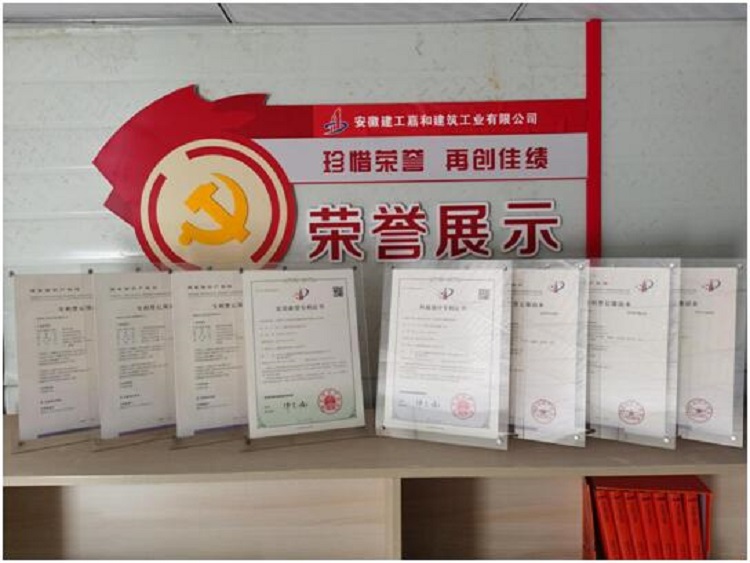 嘉和建筑工业园高度重视技术研发实力提升,已承接了多个相关课题的研发,并取得阶段性结果。其中《装配式工业助力蚌埠市建筑业绿色转型升级研究》课题获得由蚌埠市“社会科学计划政府资助项目”立项,成为该市智库建设和社会科学计划立项唯一由生产企业申报乐成的建筑行业领域课题。先后取得一种用于PC构件养护窑螺栓预埋的装配式定位装置、装配式定位器(PC构件养护窑螺栓预埋用)、通风外墙、一种建筑内隔墙、钢结构复合楼板、一种轻钢结构衡宇墙壁、楼板结构、一种轻钢结构建筑屋面等多项发明专利权,7项专利正在申报中。