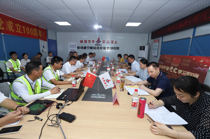 8月10日-11日,股份公司副总经理黄代赴安徽装置公司蚌埠在建项目宣讲习近平总书记“七一”重要讲话精神。蚌埠分公司班子成员、全体党员及项目员工聆听宣讲。安徽装置公司党委书记、董事长胡六中主持集会。