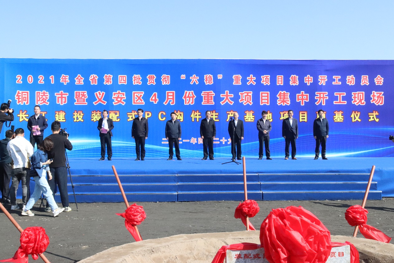 4月29日上午,全省贯彻“六稳”铜陵市暨义安区4月份重大项目集中开工仪式在安徽MG电子长江建设投资有限公司新型建筑工业化基地举行 。铜陵市委书记、市人大常委会主任丁纯出席并宣布项目开工,市委副书记、代市长孔涛主持,MG电子控股党委书记、董事长赵时运出席并致辞 。市领导张梦生、程双林、潘荣华、汪宜武等加入,市委常委、常务副市长程双林通报全市4月份重大项目集中开工情况,义安区委书记汪发进讲话 。