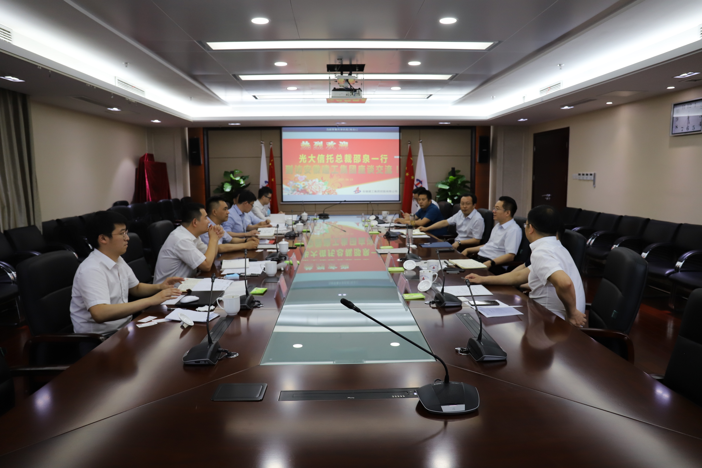 6月23日下午,MG电子控股党委副书记、总经理刘家静在安建国际大厦会见光大信托总裁邵泉一行并召开座谈会。