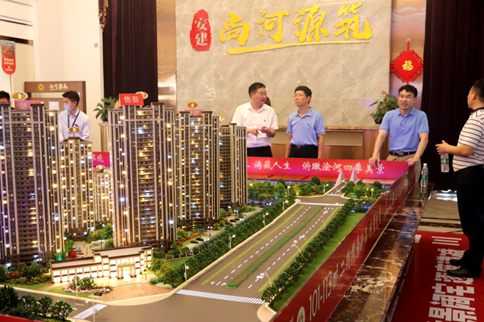 王厚良一行先后视察了安建地产·汉城源筑及安建地产·尚河源筑两个项目的施工现场、样板房和营销中心,听取了项目卖力人对现场情况的汇报,详细了解项目开发建设情况,随后召开座谈会。