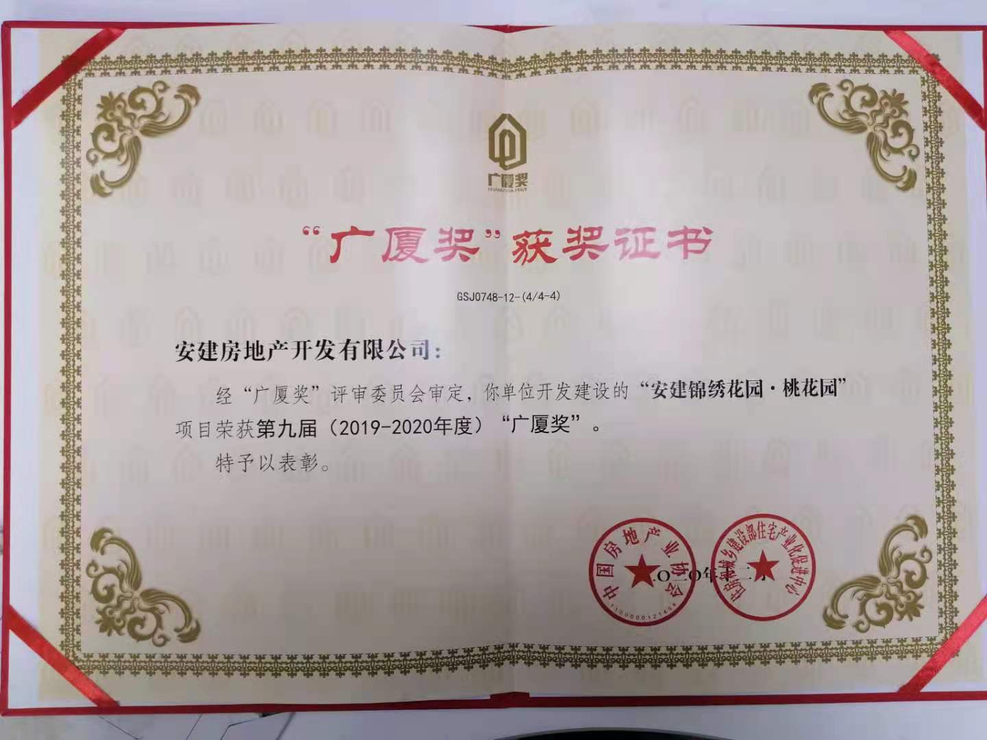 近日,集团所属安建·锦绣花园项目喜获第九届“广厦奖”,成为安徽省首个获此殊荣的装配式项目。这也是集团获得首个“广厦奖”。