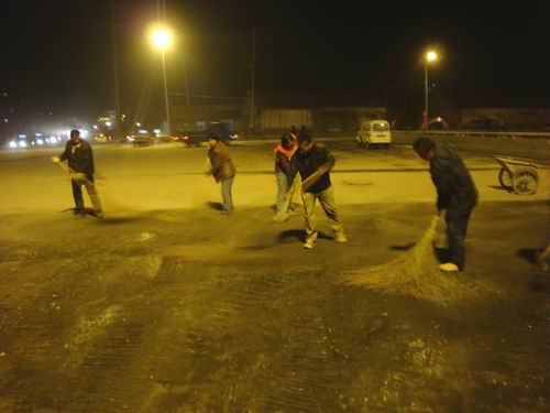 上午8点许,经过7日一夜的交口清理,市政北二环开始有计划有办法的进行摊铺交口桥面部分的施工事情。施工历程中,项目部克服了交通不关闭等制约因素,在确保宁静生产的状态下,对交口桥面的防水层和交口两侧的沥青层进行有序开展、同时施工。