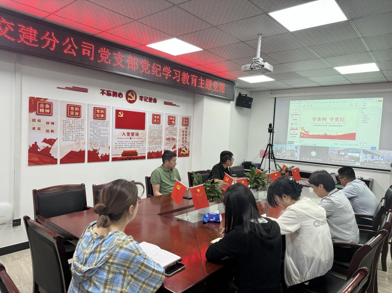 近期,交建分公司党支部开展党纪学习教育专题党课,深入学习贯彻修订后的《中国共产党纪律处分条例》和习近平总书记的重要讲话和重要指示精神,通过党纪学习教育,学出生产力、战斗力、凝聚力,做到学以致用、知行合一。