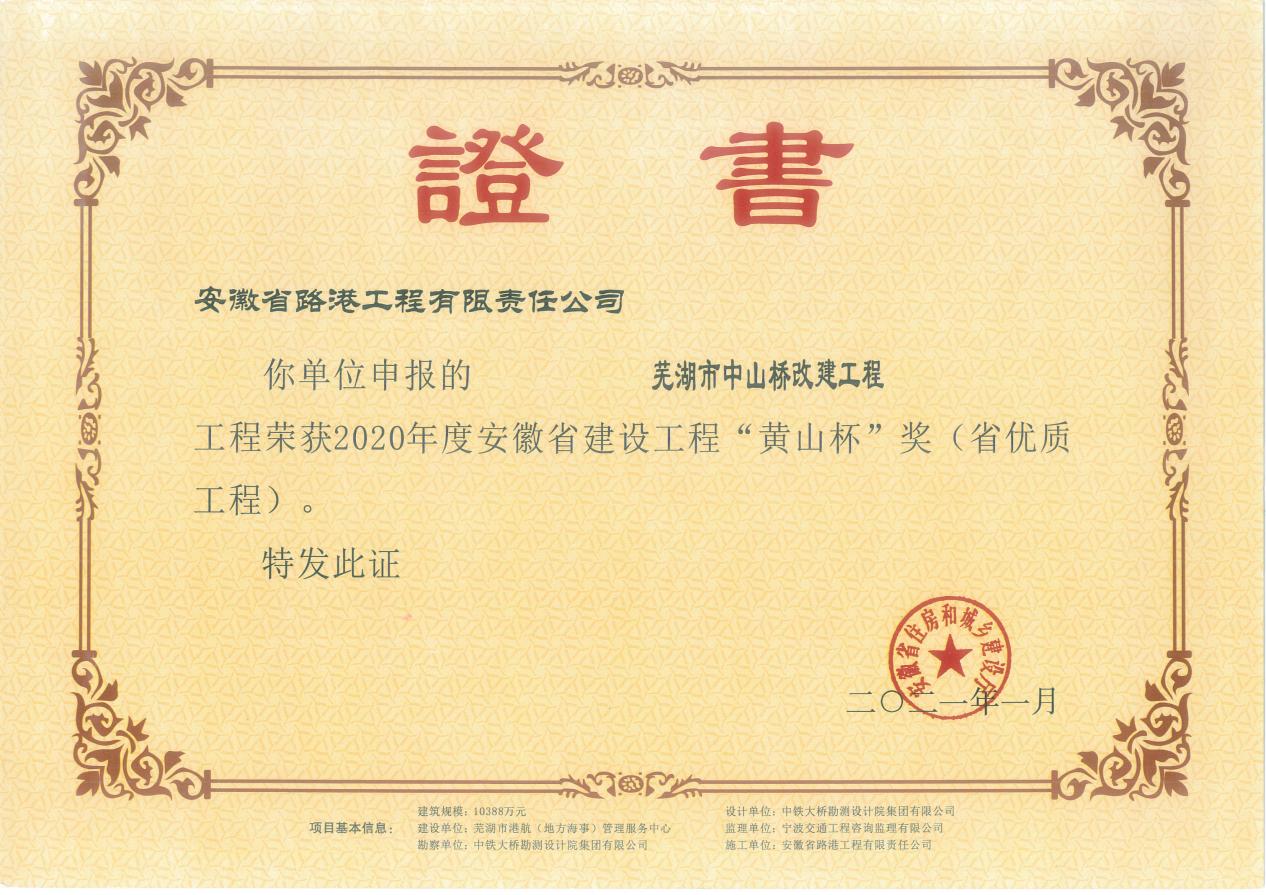 黄山杯奖证书