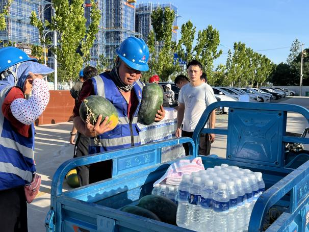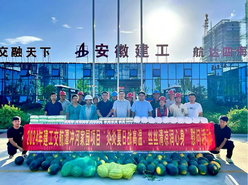 7月25日下午,MG电子交航潭冲河家园项目联合业主、监理单位开展“炎炎夏日战高温,丝丝清凉润心身”慰问运动。