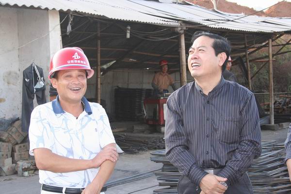 在黄祁高速公路05标项目部,李长斌副董事长听取了黄山片区4个项目部的事情汇报,并时时就一些项目问题与各项目部同志认真交流、研究,在谈到一些施工难点要点时,他还饶有兴致的与同志们商量解决计划。
