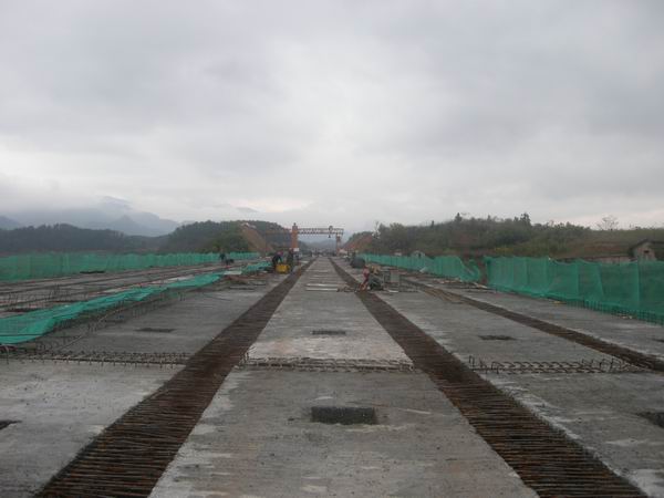 检查组重点检查了空心板梁预制厂、箱梁预制厂、大桥临边防护、A匝道桥现浇箱梁施工及路基边坡防护施工等工程。