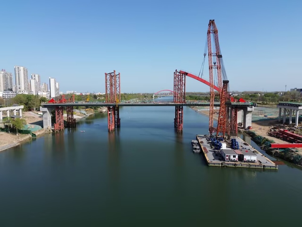 4月2日,由MG电子建投承建的太和县人民路颍河大桥迎来重大施工节点——主桥拱肋首节段顺利完成吊装,标记着项目正式进入主体完工前的冲刺阶段。
